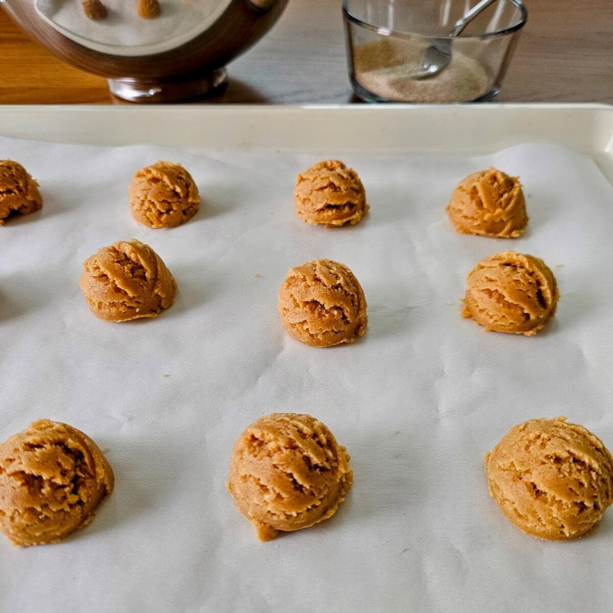 - Use a cookie scoop to portion out the cookie dough and place the mounds two inches apart on an ungreased cookie sheet. Alternatively, you can line your cookie sheet with parchment paper or a silicone baking mat. If you don’t have a scoop, you can use a spoon to form the dough into balls, using about 1 1/2 tablespoons of dough for each cookie. While you can make larger or smaller cookies, remember to adjust the baking time accordingly.