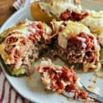 These Italian Stuffed Peppers can be prepared in the Slow Cooker or Oven. Smothered in a rich tomato sauce, they are tender, juicy, and filled with Italian flavors.