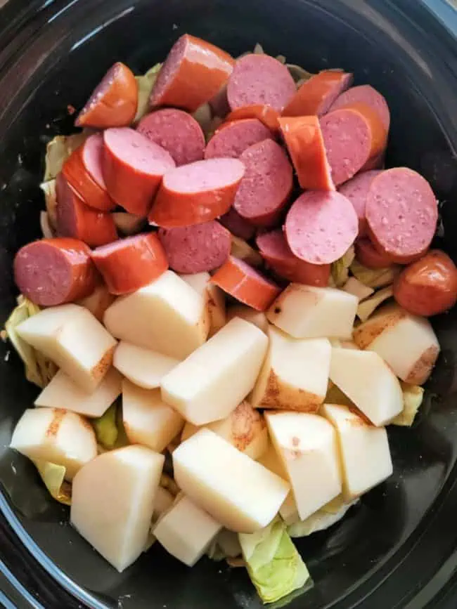 Ingredients for Crockpot Kielbasa with Cabbage and Potatoes