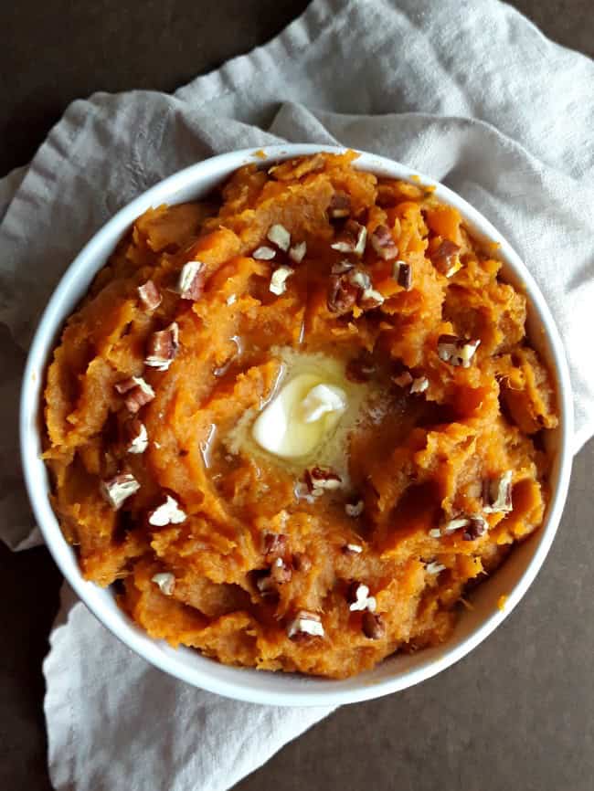 Pecans – Pecans are my choice of nuts to top my sweet potatoes, but chopped and toasted walnuts are delicious, too. Of course, if you don’t like nuts or have allergies, the recipe will work just fine without any nuts at all.