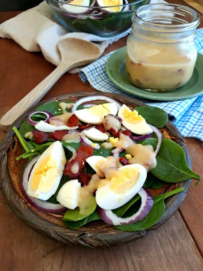This Spinach Salad with Hot Bacon Dressing is filled with fresh, tender spinach greens and topped with an flavorful hot bacon dressing. It’s perfect for a light lunch or a side dish at dinner.
